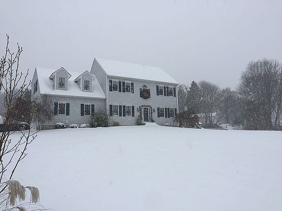 Set on nearly 5 park-like acres in a gorgeous setting, this newer Colonial has been meticulously maintained, inside and out! Two story foyer welcomes all who come. Front door with side lights and large Palladian window allow light to fill the space. Natural wood floors grace the entry and lead you through the formal dining room, kitchen and halls. Granite kitchen with breakfast bar and dinette area is complete with custom lighting options to set just the right mood. Family room with pellet stove insert is sure to warm you up on the coldest nights while being incredibly efficient. Rounding out the first floor is an office, living room or den perfect to that working professional! Second floor master suite is generous in size and complete with a walk-in closet and a "comfort level" vanity height which is slightly higher yet much more comfortable than normal. Bonus room(18x16) with separate heating zone) could be a fourth bedroom, game room, upper level playroom, etc, complete with closets and laundry room including a high efficiency washer and dryer that will stay with the home. A full basement with high ceilings is easily finished into more living space is so desired. Perfect for storage and housing all of the mechanical equipment including a 3 zone heating system. Top of the line central air conditioning unit is the latest in efficient technology and sized to handle the existing space and any future expansion of living space. Other notable features include a composite deck with vinyl railings for minimal maintenance, manicured lawns, and a location set way back off the road it feels like a mini oasis!