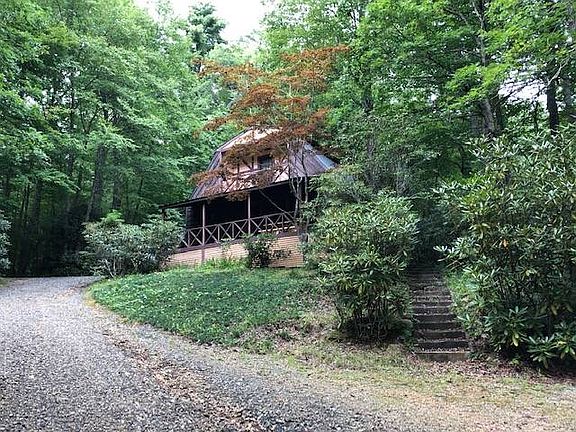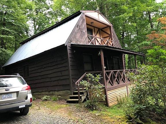 Quaint cabin- feature three bedrooms, two baths. Living, kitchen, and dining- open floor plan with wood stove. Detached one car garage/storage area. Located on 4+ acres with privacy. Property borders the Blue Ridge Parkway. Pond on property, beautiful trees, rhodos and more. $169,900