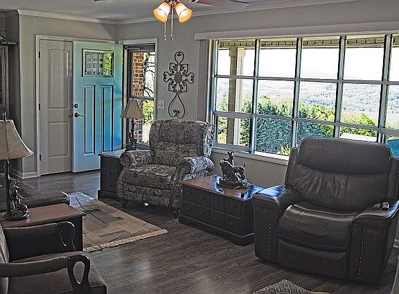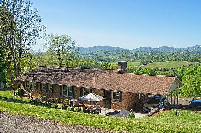 Updated brick ranch home with terrific, unobstructed layered mountain views. Enjoy the panoramic view of Bullhead, Mahogany Rock, and Green Mountains from every room on the front of this home or from the front porch, or swing. Located just five minutes from downtown Sparta, you will have easy access to restaurants, shopping and local events. It's just about 15 minutes to fishing and kayaking in the Little or New Rivers as well as golfing on three nearby courses. This home provides main level living at its best with an updated kitchen with stainless steel appliances, granite countertops, lots of cabinet storage, dining area and breakfast nook. Primary bedroom has newly remodeled ensuite bath with walk-in shower. Wake up and warm up in the cool mornings by the gas log fireplace in the living room or with the electric logs in the breakfast nook where you will be mesmerized by the view. For family fun, enjoy the open finished basement with separate areas for preparing your snacks, watching TV, playing games, or just reading by a second gas log fireplace. (Updates include all new solid interior doors, new Larson storm doors, a new patio, a new electric water heater, and a new half bath in the basement.)