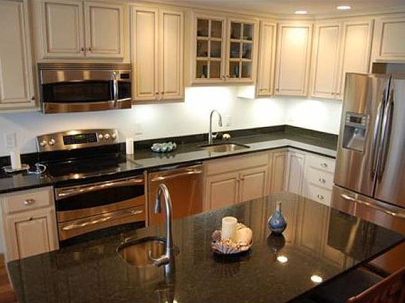 Granite counters, SS appliances, satellite & wifi avail, tile & BrazilianTeak flring, cast iron grates special ordered. Westerly views from all levels w deck off 2 levels. Maintenance free exterior of concrete siding & composite decking. Dock & moorings.