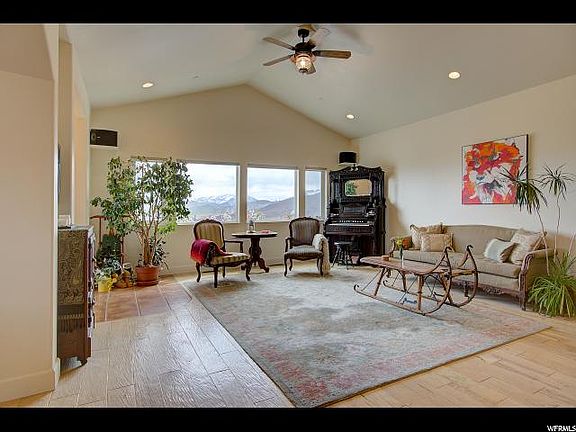 Perched on the hillside above Midway in the town of Interlaken this home has commanding views over the entire Heber Valley and backs directly to 22,000 acres of Wasatch State Park with incredible trails and amazing wildlife. Just 12 minutes to the Jordanelle Reservoir and the Deer Crest gondola at Deer Valley and and under an hour to SLC International airport this four bedroom home is priced like a Park City condo-without HOA fees! This is the perfect home for anyone looking to enjoy all the outdoor pursuits available here, 5 public golf courses and two State Park Reservoirs with marinas within 15 minutes, 10 ski resorts under an hour away, and incredible hiking and biking opportunities from your door. You can also sit on one of the decks or hot tub of this home and enjoy the peace and quiet of the nature show that occurs every day in the best neighborhood in the area. This home has a heated driveway, oversized three car garage, elevator, a second kitchen in lower level. Must see!!Square footage figures are provided as a courtesy estimate only and were obtained from appraiser. Buyer is advised to obtain an independent measurement.