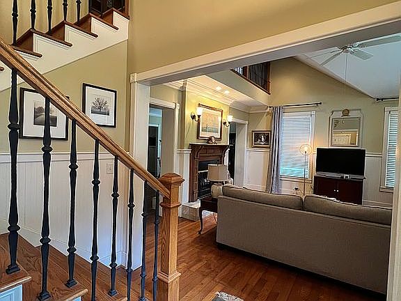Come see this darling cottage in Carrington Woods! Built in 2004, this Southern Living home has a quaint feel and a lot of character. Walk in through the Victorian front door to see beautiful hardwoods and a double-sided fireplace separating the living room from the dining room.The kitchen is large and beautiful with a gas stove and huge island. Downstairs has two bedrooms and a bath (one could be the master with an office) and upstairs is the owner's suite with a loft library/sitting area. There is a large master bath with a separate shower, tub, and two vanities. Outside is a screened porch and fenced backyard. There's a storage shed that will remain with the home. There is a Seller's Disclosure but home will be sold with all appliances. "Tax assessor has incorrect square footage on tax card."
