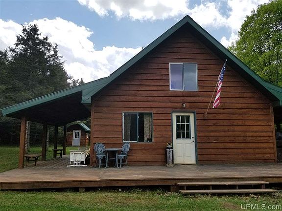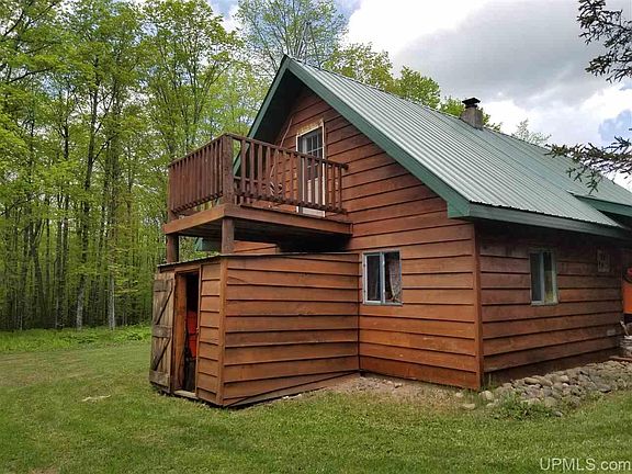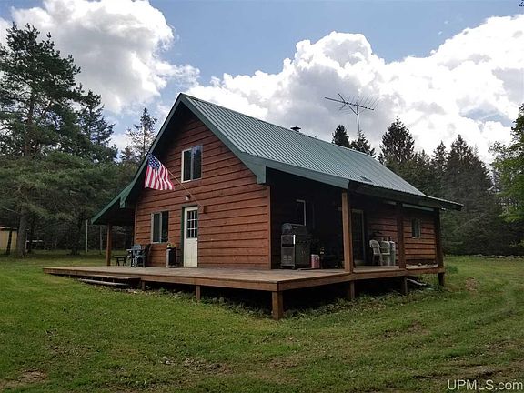 This very well built Pine sided Cabin is tucked away on a rural country road. There are two bedrooms and a loft for sleeping and a great room which is 21x24. The cabin has a cement floor. The oven/range and refrigerator are included in the sale and some of the furnishings. A free standing wood stove is the heat source. The cabin is wired for electric but the power source is a Honda 2000 Generator which will stay. One of the bedrooms also has the plumbing for a bathroom. There is a quaint 12x15 Sauna on the property and also a 14x20 drive thru storage shed, a 4x8 metal storage shed, a 8x12 wood shed, a 8x8 Generator shed, and an 8x8 Outhouse. The cabin has a large wrap around deck. There is electric available on Lambert Rd. a short distance from the cabin. There is no well or septic. The Seller has always hauled water into the cabin. As you drive into the property there is a spruce plantation and mature hardwoods. The property adjoins timber company land and Lambert Rd. runs into Iron County Land which gives you access to the Snowmobile and ATV Trails which will also lead you to the Shallow Boat Landing on Chicaugon Lake or to miles of trails throughout the Upper Peninsula and Wisconsin. This private, peaceful setting is ideal for Wildlife that thrive in the area & there is a very nice Deer Blind on the property. The County maintains the road and the Owner of this property and neighbor take care of plowing and grading the road from the County turn around area to this property which is about 1/4 mile. Great Cell Phone Service at the cabin and an Antenna for TV. This property offers a scenic setting, privacy and Nature at its Best.