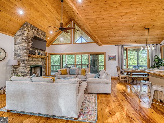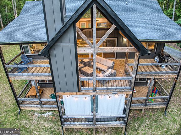 Turn-key, fully furnished 4BR/3.5BA luxury cabin in desirable Grant's Summit! This newer, modern-rustic home features hardwood floors, custom cabinets, leathered granite, wall-to-wall sliding glass doors, and expansive windows. Seller has recently made several updates (not yet pictured) including adding all new linens, new smart tvs, arcade games, landscaping and more. Enjoy indoor and outdoor fireplaces, two oversized covered porches, and a 7-person hot tub. Main level includes a spacious master suite, gourmet kitchen, and guest half bath. Terrace level offers 3 bedrooms, 2 full baths, wet bar, and extra living space with sleeper sofa. Sleeps 10+ comfortably. Sits on 1.38 acres with paved roads and lake trails nearby. Just minutes from downtown McCaysville, Blue Ridge, Ocoee Whitewater Center, hiking, wineries, shops, and more. Active, successful short-term rental with all furnishings included-just bring your suitcase or invite your guests! New photos will be taken next month by the best photographer in north Georgia and the seller has been approved to transfer the photos to the buyer at no charge!