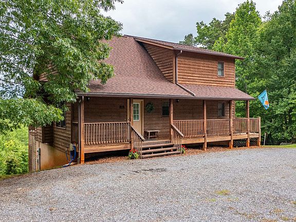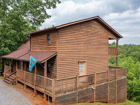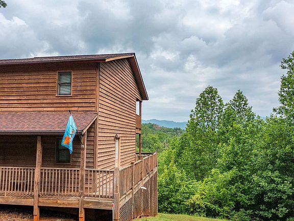 Welcome Home to this Stunning Chalet featuring 2 beds, 3 baths, and a den, with a Fantastic year round mountain view and high speed Internet! A welcoming front porch enters right into the main living area with a vaulted, wood cathedral ceiling, gas log fireplace, and door out to the porch which wraps around 3 sides of the home. The Kitchen is to the right and has custom cabinets and a breakfast bar. There also is a bedroom, full bath, Washer and dryer, and exit to the porch. The Spacious Master Bedroom loft has a full bath with walk in shower, a big closet, and a great sitting porch with huge Views! The full finished lower room has a big living area, an office/den, a full bath, and a concrete patio with hot tub & mountain views! Easy Access and no steep roads to get to this amazing view! New Roof in 2019, New AC in 2023!