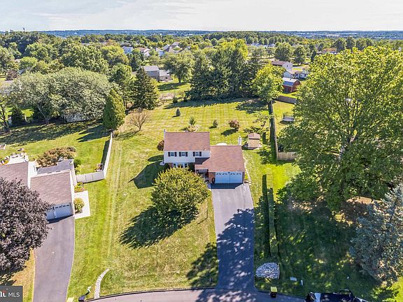 Offers are due Sunday, 9/17/23 by 5pm. Do not miss your chance to own this updated, impeccable 4 bed 2.5 bath colonial in the highly rated Souderton Area school district. Perfectly situated on one of the prettiest streets in Harleysville. Move right in and enjoy your worry free forever home. Everything has been done and done well. As soon as you pull up, you'll notice the lovely curb appeal of this home. It is enhanced by spectacular landscaping, freshly power washed vinyl siding , new cement porch / walkway, completely new driveway, which was increased in width by 2 feet on each side. Both Chimneys have newly refinished stucco, and brick capping with new chimney caps. The architectural shingled roof has a life time warranty transferrable to the new owners. Come inside this spacious, freshly painted, bright and airy home, you'll notice gleaming hardwood floors, beautiful replacement windows and upgraded interior doors throughout. The floor plan flows nicely. The living room is large with a beautiful bay window it leads into your formal dining room. Then step into the heart of the home, the bright, open , eat in kitchen which features, stainless steel appliances, undercounter lighting , stunning granite countertops , recessed lighting and views of your yard. Engage with your guests as you have clear sight lines into the family room. This generous room with it's elevated architectural ceiling, wooden beams, newer carpeting and recessed lighting showcases the full wall brick wood burning fireplace. Go through the Pella sliding doors with built in blinds onto the gorgeously hardscaped patio. Relax and take in the view of your spectacular back yard. Owners have spared no expense making this an oasis. Beautifully landscaped , there's split rail fencing and a spacious shed that has a new roof. Also you have easy access to lighting, electrical outlets and water bibs, front & back. They even had French drains professionally installed to direct the rainwater towards pop up drainage emitter in the stone beds at the base of & left of the driveway. This yard is always ready for your enjoyment. The first floor is complete with a new powder room and upgrade mud/laundry room with luxury vinyl plank flooring. Laundry room has access to outside and to the the 2 car garage. You will find 4 large bedrooms and a beautiful new hall bath on the 2nd floor. The primary bedroom also has a stunning remodeled ensuite bathroom and double closets. So much storage in this home! This home boast of so many extras: - Large clean , painted basement. Sewer pipe has been replaced & a new a sump pump basin has been installed with electrical pump discharge and water commander back up: -New garage doors with remote openers on both sides. Garage has been drywalled and has a loft storage area and pull down attic ladder: -Upgraded electrical panel, carrier central air, temperature controlled attic fan: -New water heater, new chimney liner, newer heater, thermostats with 3 zone heating : -Quick access to Turnpike and public transportation and so much more