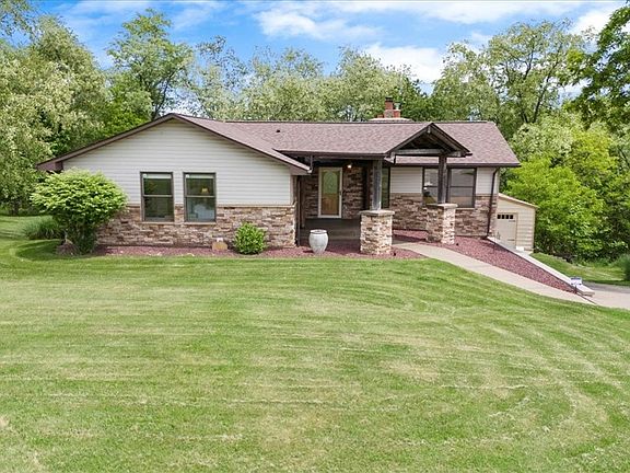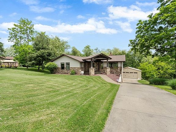 Stunning raised ranch nestled on generous ¾ acre lot! Step into the impressive LR, featuring cathedral ceilings & stone fireplace. The spacious eat-in kitchen is a chef's delight, equipped w/SS appliances, granite countertops, center island, & built-in desk. Transition seamlessly from the kitchen to the deck, perfect for entertaining guests while taking in breathtaking views. On the main level, discover an office, 2 bedrooms & full bath. The finished, walk-out lower level is an entertainer's paradise, boasting a 2nd fireplace w/a brick surround, bar area, & access to back patio. LL accommodates the owner's suite, complete w/spacious walk-in closet, built-in shelving & an updated full bath featuring soaking tub & large, walk-in shower. Laundry & storage facilities conveniently located on this level. A lengthy concrete driveway provides extra parking & leads to a spacious 2-car garage. New Roof & Gutters (2021) New Retaining Wall (2023), many updates. Easy access to I-70, shops & dining.
