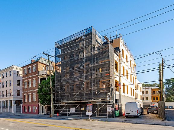 In the heart of Charleston's historic district, 284 Meeting Street presents six impeccably designed luxury townhomes that blend timeless architecture with modern sophistication. Nestled on the edge of Ansonborough, a peaceful residential enclave, residents are just steps from the city's best shopping and dining along King Street, the charm of Marion Square, and renowned cultural landmarks including the Gaillard Center.Each residence showcases enduring craftsmanship, featuring a classic stucco and cast stone exterior accented by custom detailing. Built with insulated concrete form construction for enhanced strength and energy efficiency, these homes are as durable as they are elegant. A gated entry and private parking for two vehicles per home ensure both privacy and convenience,while a secure lobby with elevator access and soundproofed common areas elevate comfort and peace of mind. Inside, thoughtful design meets effortless luxury. Kitchens and baths feature custom cabinetry, high-end integrated appliances, and natural stone surfaces complemented by designer fixtures and wide-plank hardwood floors. Ten-foot ceilings and gas fireplaces add warmth and grandeur, while private balconies invite moments of relaxation amid the city's historic skyline. Each home also includes a conditioned ground-level storage space for added convenience. Unit 203 features 2,847 square feet of living space including 3 bedrooms and 3.5 bathrooms. Upon entering, you're greeted by open living spaces seamlessly blending a spacious living room, dining room, and kitchen, ideal for everyday living or entertaining. A large covered terrace, accessible from both the living room and primary suite, extends the living area for al fresco relaxation and dining. A second covered terrace opens from the kitchen, allowing additional space to enjoy Charleston's beautiful weather. The primary bedroom suite offers a serene retreat with two walk-in closets and an en suite bathroom featuring a dual sink vanity, WC, tiled shower, and soaking tub, while the remaining two guest suites are well-sized with nicely appointed bathrooms. As of October 2025, significant progress continues at 284 Meeting Street. The building's structural shell and steel framework are complete, with exterior waterproofing and stucco nearing completion along the street façade. The roof preparation is underway for the waterproofing and skylight installations, while Marvin windows and cast stone details will be added in phases. Inside, framing and decking are well underway, and interior systems are beginning installation. Our Design Team is finalizing selections for three of the six sold residences and curating finishes for the remaining homes, as well as the elegant entry foyer and interior stairwell.
