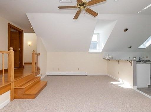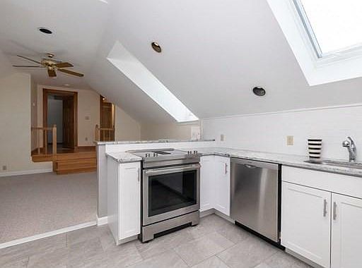 Auburndale Village location! This unique loft style condo unit truly as it all- fully updated eat-in kitchen with stainless steel appliances and stone counter tops. Plenty of natural sunlight beaming through the multiple skylight windows placed throughout the condo's ceilings. Step down living room with two large bedrooms- primary bedroom has two closets. Forced hot air and central A/C is a bonus! Exclusive porch space and two off-street parking spots, even shared outdoor space. In very close proximity to the commuter rail (purple line), restaurants, shopping, express bus, school(s), major highway access, and more!