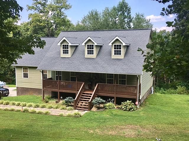 Beautiful cape cod on 4+ acres. Three levels of wonderful living. Exquisitely decorated, modern kitchen with huge covered porch. Large bedrooms and ample closet space. Hardwood, tile and carpet, 2 jetted tubs, tile shower. Kitchen features range, refrigerator, dishepwasher a doll microwave. Stone fireplace in the living room. 2 car garage. Large partially finished basement with walkout into beautiful back yard. Very private.