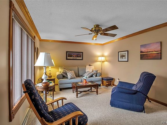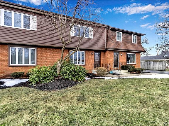 Meticulously maintained townhome nestled on a quiet neighborhood street! This townhome consists of 2 bedrooms, 1.5 bathrooms, 1 car garage & full basement. As you enter the spacious LR, you'll find lovely crown molding details, ceiling fan & an Anderson window. Open concept to the kitchen/dining combo..these custom cabinets from Kitchen & Bath Unlimited will amaze you!! Upgraded laminate countertops, tile backsplash, deep single bowl sink, pantry, desk area & recessed lighting. DR has a Marvin sliding door, overlooking the deck, w/ power retractable awning & beautiful backyard! Perfect 1/2 bath on the lower level & fresh full bath on the 2nd floor, w/ walk-in shower & pristine vanity! Open staircase leads to the hallway w/ vaulted ceilings & a skylight. Primary bedrm measures 16'x10' w/ a sizable closet! The 2nd bedrm is 12'x13' w/ 2 closets. Both bedrms can fit a king size bed! Basement is great for storage. AC & Furnace from 2010. Ducts cleaned 2023! Updated electrical panel. Sump pump - water back up from 2017. Detached garage, left side, has a newer auto door too. The seller has lived here for 30 yrs & has put so much love into this home! Town of Lancaster & Depew Schools.