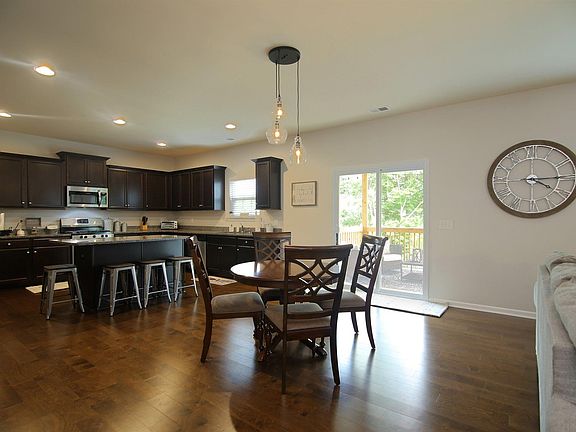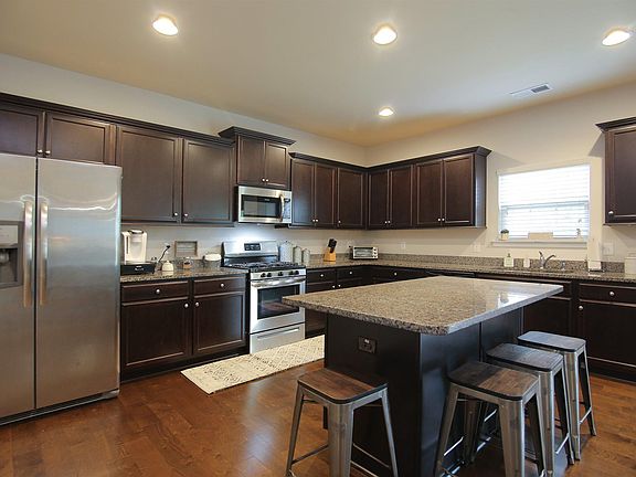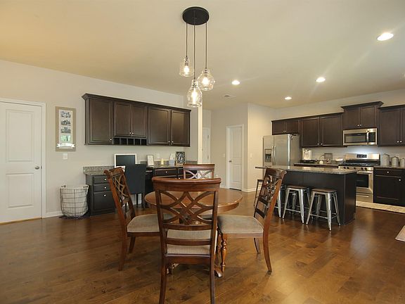 - RoomKitchenFeatures: Granite Counters, Kitchen Island, Pantry, Recessed Lighting, Eat-in Kitchen, Cabinets-Stained, Floors-Laminate, Backsplash-Granite