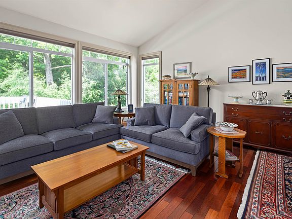 Welcome to your dream retreat! Elegant & spacious townhome in the coveted Glen Eagles neighborhood nestled within the prestigious Vermont National Golf Course community. Experience the epitome of easy, luxury living in this meticulously maintained home. Many fine finishes and extras throughout including a custom stained glass decorative window. Modern open floor plan with soaring cathedral ceiling and beautiful hardwood flooring. Chef’s kitchen boasts quartz countertops, custom wood cabinetry, and newer appliances. Expansive living/dining room leads to a gracious deck, perfect for gatherings & entertaining. Double-sided gas fireplace adds warmth & charm, enjoyed from both the living & family rooms. Retreat to your private primary bedroom suite, featuring a custom walk-through closet and spa-like bath with an oversized tile shower & double vanity. Two additional guest rooms provide ample space for family & friends each featuring a private bath. The finished lower-level with walk-out leads to a private patio framed by new landscaping and offers additional living space, ideal for a home office, gym, or recreation room. Enjoy a 2-car garage with finished interior & added storage. Custom blinds by Hunter Douglas installed throughout. An abundance of recreation including nearby Dorset Park, bike path, walking trails, golf & more. Conveniently located, minutes to schools, shopping, UVM, Medical Center, Lake Champlain and downtown Burlington. Tranquility and serenity abound!
