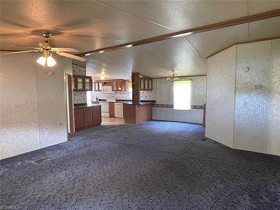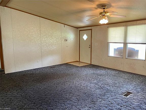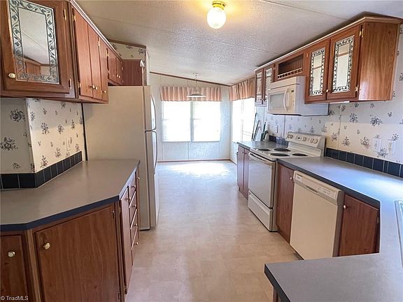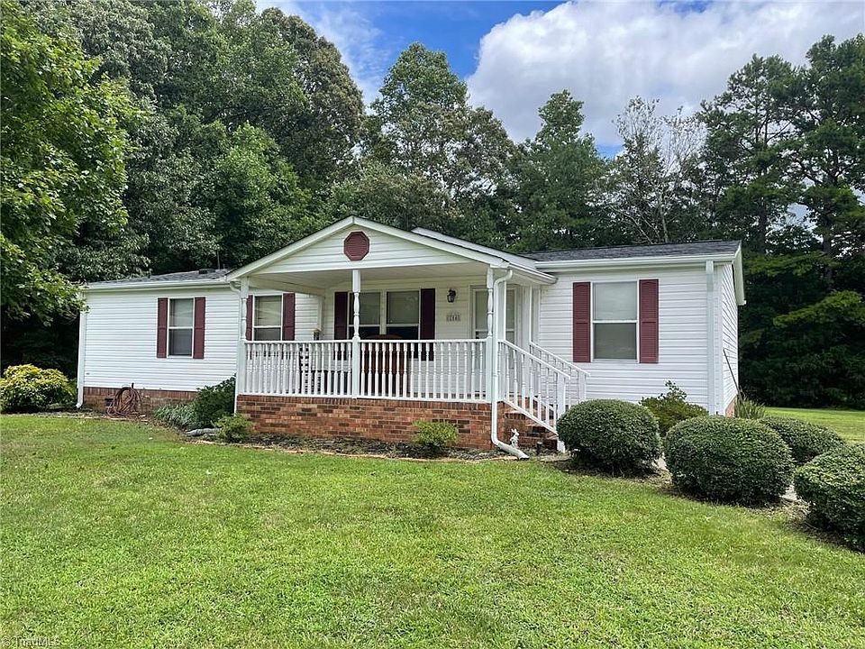 Open and spacious, well-maintained double wide on a cul-de-sac lot. Heat pump installed in 2016, roof replaced in 2018. Master bathroom has a garden tub and double sinks. Wooded lot with covered front porch. All appliances remain. Easy access to Hwy 64 and 52 and within walking distance to one of the local vineyards. This one has it all! Country living at its best!