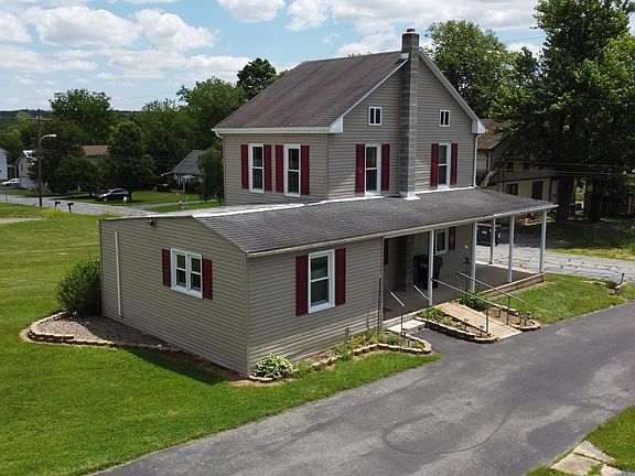 Yes, that garage goes with this property! Yes, it has 4 bays! Yes, it has loft storage! Yes, there is a separate buried gas tank just for the garage! Yes, it has a metal roof! Yes, it has a steel beam with a pulling device! Yes, all you car people, it does have a macadam driveway that goes right to it! That’s one box checked you never thought you had a chance to check, but here it is! But, it also has a house; a charming farmhouse-style home built in 1891, so expect the inside to reflect that era, but an addition off the kitchen was added which includes a bathroom with a stall shower and laundry area with a washer and dryer that remain and shelving for easy storage of laundry supplies. Be delighted and surprised by the size of the kitchen, with a stainless steel fridge and stove, also remaining. The main level has a living room and a dining room, currently used as an all-purpose room. The upper level has a primary bedroom, repainted, a second, wallpapered bedroom, and a full bath with a tub. Heading to the basement, a nice surprise in an older farmhouse is the Comfortmaker oil hot air furnace and electric Turbo energy-saver hot water heater, both newer and in good shape, and no knob and tube! This gem is sewer connected, and though it is serviced by a well, the property can be connected to the public water service. There is more – this home is wired for a generator, has a second 1,000 gal oil tank that services just the house, and has replacement windows. The exterior of the home may very well be your favorite aspect of this unique property with its L-shaped front and side porch and a deck off the kitchen with access through French doors. The blend of old and new is perfect and with the large side yard you gain tremendous space for outdoor activities. Saving the best for last, the zoning on this one is B/VC, Borough Village Center Mixed Use District, and the allowable uses are extensive and diverse from A-Z! You might even check a few boxes you didn’t even know were on your checklist!