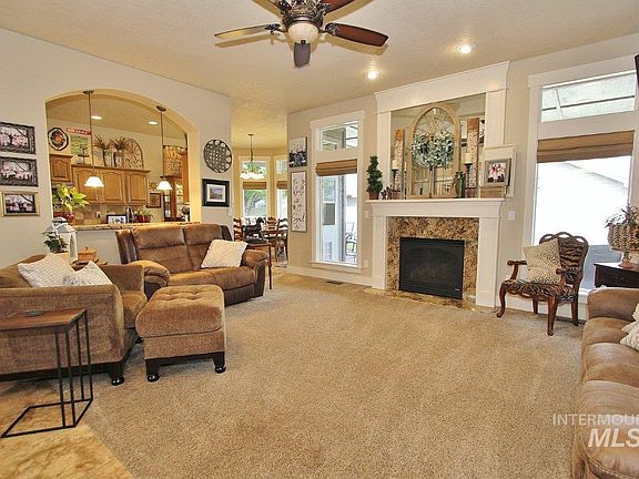 The secret is out, come home to Star Idaho! Quality craftmanship abounds in this lovely 3 or 4 bedroom home nestled in the gorgeous Pinewood Lakes.Travertine tile,granite counter tops, lofty 10 ft ceilings, gas fireplace, ample outdoor living spaces, all lend to the feeling of well being. This home was custom built with with an approach to fine living, & that philosophy is still felt today. Open concept gathering room & kitchen are an amazing place to get together.Two guest rooms with window seats are a great place to find respite for just a bit.The large bonus room can function as a fourth bdrm as it has a closet and 1/2 bath attached.Home office is located off the main living area with glass doors for privacy & light.The principle bdrm is spacious with glass doors to the patio & hot tub area. Can we chat about the back yard living area?Yes! Spacious, beautiful, the perfect place to unwind & listen to the water feature & enjoy the mature landscapes' abundant color.REALTOR owned, this home is just WOW!