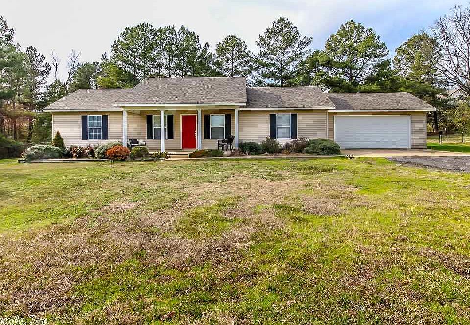 This 3 bedroom 2 bath home in Lake Hamilton School district situated on over an acre features vaulted ceilings with recessed lighting, updated kitchen with stone back splash, wood laminate flooring, covered front porch, workshop, and covered back patio. Convenient location close to the school.