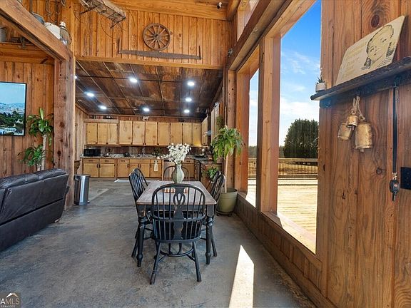 Luxury Barndomansion Retreat Cinematic Countryside Living Set behind a private drive and perched high on a gentle hill, and boasting over 7000 sqft, this luxury barndominium is more like a Barndomansion and commands breathtaking views over five fully fenced, picturesque acres-evoking the iconic serenity and rugged elegance of the Yellowstone homestead. Thoughtfully designed with refined rustic finishes, the home blends elevated craftsmanship with warm, natural textures throughout. Inside, the open-concept living space is anchored by exotic granite countertops and striking custom details, while the spa-inspired bath features real live-edge wood countertops and a stunning walk-in, two-head tiled shower. Every finish was selected to create a sense of timeless luxury with a modern ranch aesthetic including pine, oak beam, tongue and groove with red cedar trim. The primary suite closet is western cedar tongue and groove, plus there are 2 built-in safes with a small hidden closet. Step outside to an oversized deck ideal for entertaining or quiet evenings overlooking rolling pastureland, mature landscaping, and wide-open skies. The homesite offers privacy, elevation, and panoramic views-perfect for those seeking space, beauty, and a true retreat setting. Whether envisioned as a refined primary residence, weekend escape, or legacy property, this exceptional barndomansion delivers privacy, craftsmanship, and cinematic countryside living-all in one unforgettable setting.
