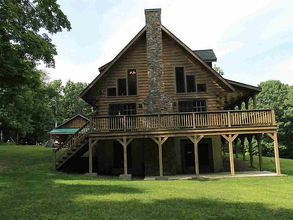Nature lover's paradise on 4.77 private acres with genuine Lincoln Log home and huge 3 Bay garage/barn. Open spacious interior with vaulted ceilings, Pella windows, fireplace wide oak flooring, master suite, cherry kitchen. Walkout basement ready to finish off for extra bedrooms or office or playroom. Whole house generator,rocking chair porch and more. Beautiful private woodlands for hiking, park like grounds complete picture.More acreage available. Close to Red Hook and Bard and minutes to Rhinebeck.