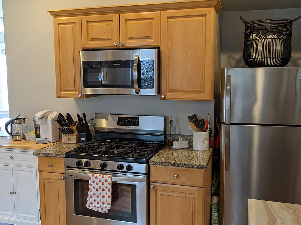Spacious 3 bedroom on the Brookline/Brighton border. 2 off street parking space (tandem) are included in the rent. Enjoy the sunrise and sunset with a front and rear deck. Huge walk in closets. Dogs are ok. Sept 1st move in.