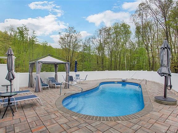Call Pat Blanko 203-206-9194! THIS IS IT! EXQUISITE Stone pillars with gated entry to this STUNNING 4 bedroom Colonial on 1.86 acres with heated salt water inground pool! SUN-DRENCHED open floor plan designed for today's lifestyle with hardwood floors throughout and loaded with windows! Dramatic entry two story foyer to main floor office with French doors; great room with marble surround gas fireplace; open to stunning white kitchen with Carrara marble counters, center island, stainless steel appliances (Wolf gas oven, Bosch Refrigerator and Asko dishwasher) and tile backsplash and the open dining room includes detailed trim work and sliders to the deck. Main floor also includes mudroom from garage and laundry. Spacious master bedroom suite is accented with crown molding, vaulted ceiling and has walk in closet with built-in organizers and luxurious master bath with double sink marble vanity and glass door DUAL 7ft shower with Venetian marble. Also on the upper level are three additional bedrooms with hardwood floors PLUS a bonus/family room! Private yard with VIEWS VIEWS VIEWS! Multi-tiered yard with deck, patio around the 35x14 heated in-ground salt water pool (9ft depth) with pool fencing in addition to the fenced yard, firepit. Irrigation system, security system! Call Pat Blanko 203-206-9194!