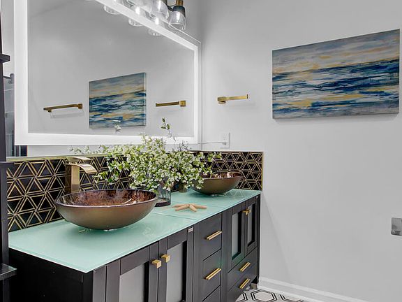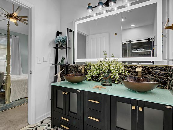 Established Marrington Villas at Cobblestone is a low-maintenance community nestled into popular Summerville. Bordering Goose Creek, enjoy convenient proximity to dining, shopping, entertainment, Joint Base Charleston & the airport. This single story villa boasts a multitude of stylish updates. Oversized laundry room offers space for an office/workstation, maximizing the living area of the home. You'll be wowed by the remodeled kitchen & bathrooms! Relax on the enclosed sun porch w/ track window system. Property extends beyond the current privacy fence, backing to woods. Amenities: lawn maintenance & irrigation, exterior insurance, roof replacement fund, termite bond, pool, clubhouse with wifi, exercise room & sitting deck with porch swings overlooking a beautiful pond w/ fountain.Upgrades during ownership: - New LG washer and dryer (06/22) - new fridge (01/25/24) - stone look tiles laid in back yard and new landscaping trim - completely remodeled master bathroom with rainfall shower head, LED large mirror, cascara marble floor tile, glass frameless shower door, new overhead fan - completely remodeled guest bath with subway tile to ceiling in shower/tub, herringbone tile to ceiling at vanity, LED mirror, tile floor - completely repainted garage - new door handles throughout - new storm door (didn't have one before) - RING doorbell - NEST thermostat - white painted cabinets and new hardware - kitchen backsplash installed - smart lighting throughout - Wifi garage opener, open anywhere in the country basically - laundry room cabinets installed - laundry room wall tiled - repainted master closet - shutter style blinds throughout - insulated garage door - new dining room light fixture - new large fanamation fans in living room and master bedroom - new fan in guest room - new patio light fixture (2022) - new outdoor rear security light (2021)