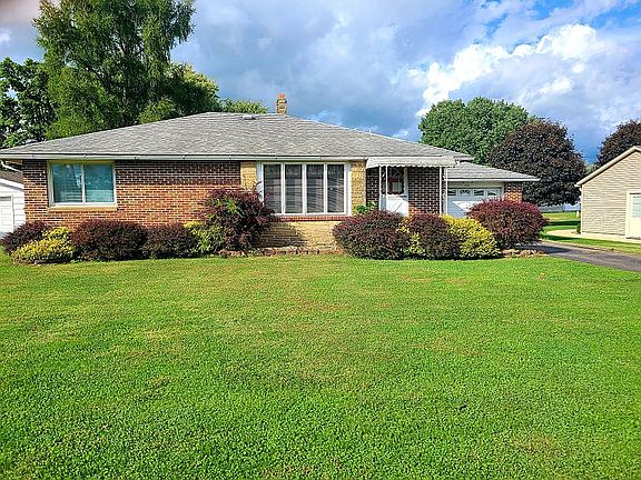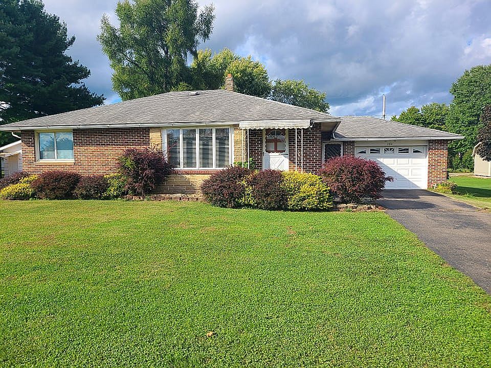 Brick Ranch home in convenient location; easy access to St Rt 16! Hardwood floors in the bedrooms, and under the carpet! Generous sized eat-in kitchen with plenty of cabinet storage and countertop space! Kitchen has door to the large back yard with porch and patio! Alley access as well! Great living room space! Roomy closets in all three bedrooms! Built-in linen closet in the hall! Full, unfinished basement with updated mechanicals! 1 1/2 car garage has loads of storage options, as well as a 2nd kitchen space; perfect for a 'messy kitchen' or canning! Laundry has been moved up to the 2nd kitchen area! Lots of off street parking in addition to the garage! Being sold in 'as is/where is' condition! City Water and Sewer. Showings by appointment only: Please contact Tyrone Kirk at 740-828-2801