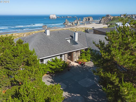 Elegant Oceanfront Bandon Beach Retreat. Custom 2005 built 3336 square foot 3BDR/3.5BA with excellent ocean views from nearly every room and your own path to the beach. Situated on a bluff approximately 60 feet above sea level, this property has some of the best views of Bandon's beaches and sea stacks and is a short walk to Face Rock State Park. The elegant 2005 built home features graciously spacious rooms, large windows, hardwood floors, recessed lighting, a gourmet kitchen, terrific master suite in addition to two guest rooms each with their private bathrooms, an office for two, media/game room, huge oceanside patio with firepit, and oversized garage with workshop, wine closet, and more. This home is equally suited for large scale entertaining or or quiet intimate evenings for two, and is only a few minutes to Bandon's Old Town shopping, galleries and restaurants, the harbor and boat launch, and an approximately 12 minute drive to championship play at Bandon Dunes Golf Resort. This home was built for the discriminating buyer looking for quality and value.