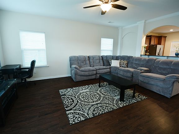 True 5 bedroom home! Downstairs features: All LVP flooring, Extra large living room, Kitchen with lots of counter and cabinet space, a great island that adds additional counter space, spacious eat-in, half bathroom, and a bedroom you could use as an office or virtual school room. Upstairs features: Massive owners suite with plenty of space, also offers a sitting area, along with a walk-in closet, full bathroom with separate tub & shower. Along with the owners suite upstairs you'll find 3 additional great sized bedrooms, a full bathroom, and the utility room. Outdoor features are: covered front porch, covered back patio, and a fenced yard. This home is located in popular Hunter Crossing and on a great lot with the playground and basketball court directly across the street.