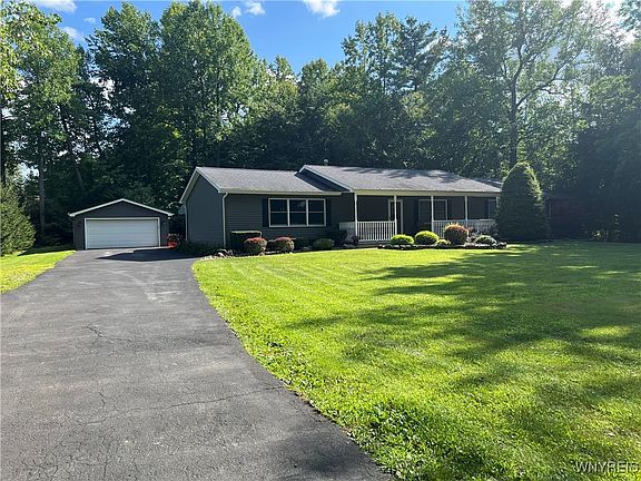 The open front porch welcomes you to this sprawling 4 bedroom 3 full bath ranch located in the Iroquois School District. Enter through the huge foyer that includes a convenient large coat closet. The open floor plan is great for entertaining. The kitchen features a breakfast bar, recessed lighting, granite countertops, ceramic backsplash, pantry and overlooks the great room area. Living room/dining room boasts sliding glass doors leading out to the maintenance free deck with covered awning and private back yard. The beautiful wood banister with rock wall staircase leads you to the family room featuring a bar area, sitting room and includes the pool table. 2 of the 4 bedrooms have ensuite full baths. All bedrooms have huge closet space/walk in. 2 car detached garage. No rear neighbors!
