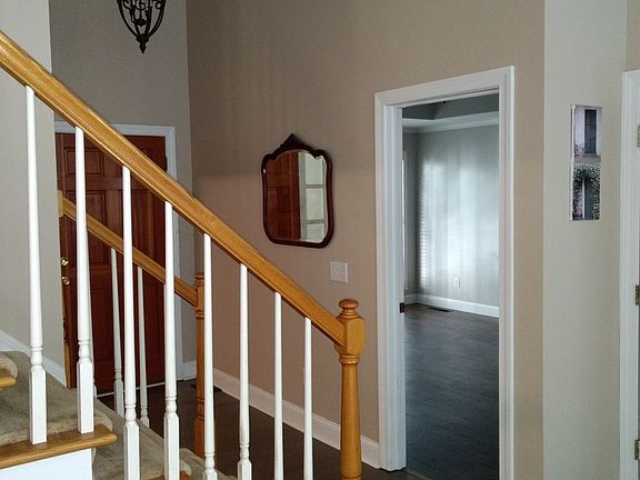 Rocking chair front porch overlooking private wooded front yard. Master on main. Hardwood floors throughout the first floor. Great room with wall of windows and double fireplace into kitchen with updated granite counters. Walk out from kitchen to private fenced backyard with firepit and outbuilding. Unfinished daylight basement. South Forsyth High School district.