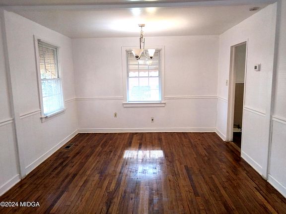 3 Bedroom Home in convenient Macon location at a great price! The clean interior greets you with lovely hardwood / LVP flooring and updated windows throughout. The covered back porch has a nice view of the large private back yard. This one is a great opportunity for an investor, first time home Buyer or someone looking to downsize. Call and schedule your showing today!
