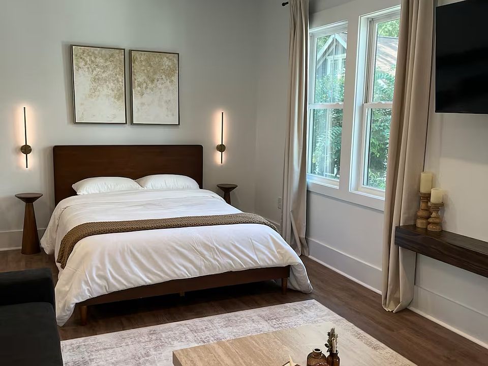 2BR suite in Plaza Midwood with luxury linens, West Elm furnishings, dedicated office, towel warmer, French press & espresso machine. Surrounded by lush green views-like a treehouse in style. Enjoy peace on a gated, quiet street just minutes from coffee, bars, and restaurants. Concierge service included for all of our guests!