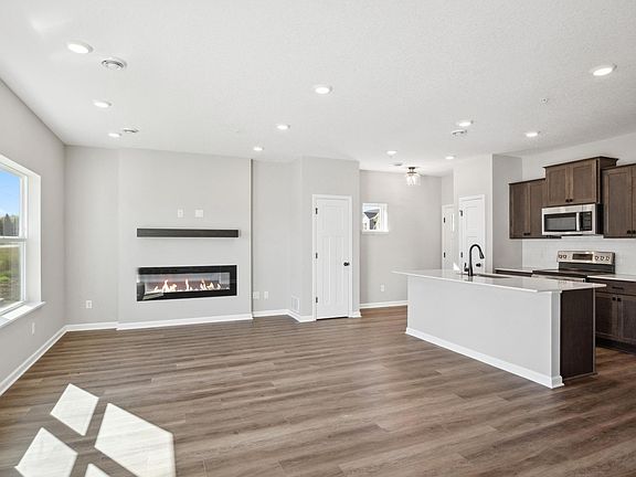Our new Bayfield plan is sure to impress! This end unit 2-story townhome offers an open concept design. The kitchen is the heart of this home and features a large center island, quartz countertops, stainless steel appliances, and ample cabinet space. Accessible from the dining area through sliding glass doors is your back patio to easily access the outdoors. The spacious family room is anchored by a modern electric fireplace offering a great space to relax or entertain. Equally impressive is the upper level with 2 secondary bedrooms on one end, a roomy loft in the middle, and a luxurious owner's suite on its own private end. Prepare to be wowed as you step into this suite, which boasts a private en-suite bath and a walk-in closet. You'll also find an additional bathroom and laundry room. Close to shopping, restaurants, and new city park with play ground, sport courts and walking path. Acclaimed St. Michael schools with easy access to Hwy 94.