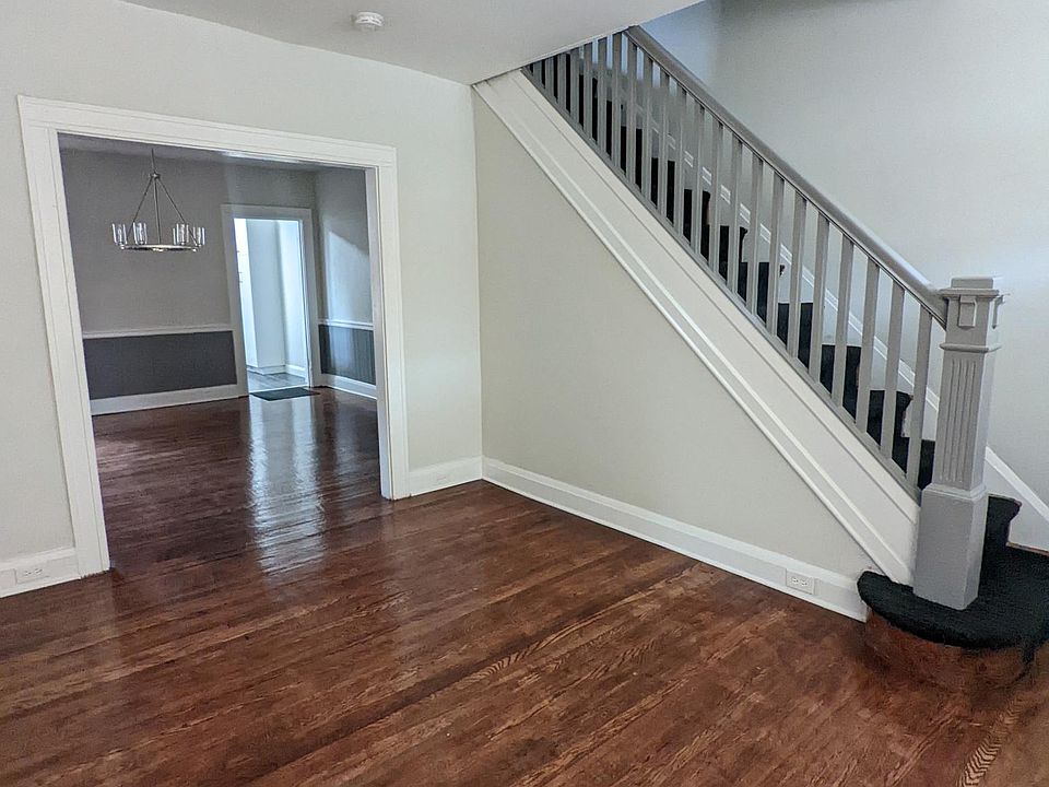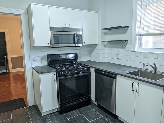 Fully renovated three-bedroom townhouse. Gorgeous hardwood floors throughout. Microwave and dishwasher. Finished basement. Off-street parking. Porch front. Water included. Available now.
