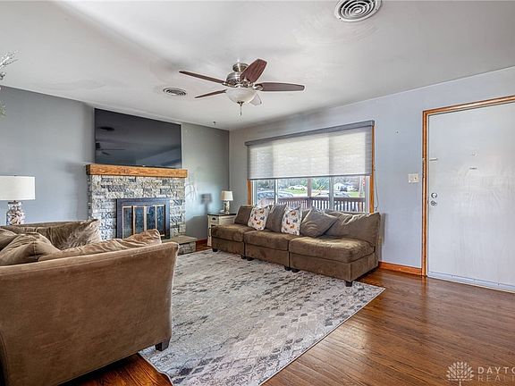 Welcome to this charming three-bedroom, two full-bath home in Beavercreek! The inviting covered front porch is perfect for relaxing with a morning coffee or evening breeze. Step inside to a cozy living room with hardwood flooring, stone wood-burning fireplace and large windows that fill the space with natural light. Three generously sized bedrooms with ample closet space.
