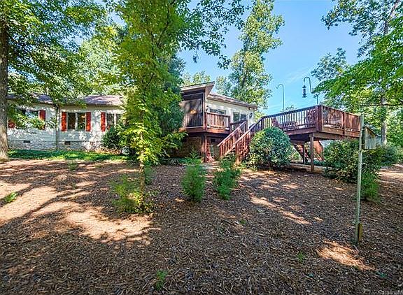 Waterfront home with screen porch and large deck over looking the lake. Very open floor plan with vaulted ceiling and gas log FP in the great room and an owner's retreat with built ins and a gas log FP. Over 2,400 sq. ft., 3 beds, 2 full baths all nestled on a 1 + ac. lot with High Rock Lake views. Roof & HVAC 5 yrs..
