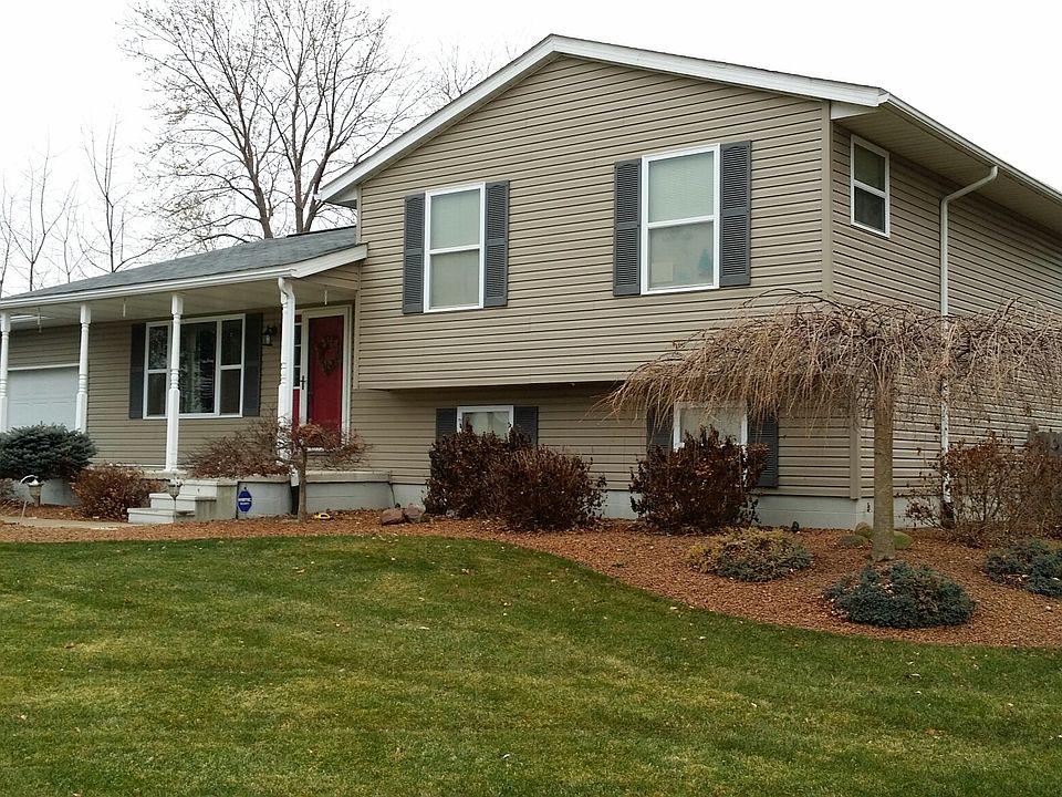 BRAND NEW in 2005 w/a Perfect country location. Close to all the retail shops, and restaurants. This immaculate split level home is move in ready. This 3 bedrooms & 2 full bath home sits on almost an acre of land. The backyard is over looking nothing but country, with an enormous patio, w/a fully equipped Tiki bar & children's play area & plenty of room for a garden and/or a pool. Entertaining here will be a breeze! When you walk in the front door, onto the tiled entrance, you are greeted by a cozy living room w/a beautiful gas fireplace, and an all new kitchen & dinning room w/sliding glass doors to patio. Upstairs has 3 bedrooms and 2 full bathrooms, one of which is off the master bedroom. Downstairs the huge family room gives plenty of room to put in large furniture & big screen T.V.. The finished basement is where the furnace, well pump, and sump pump are located. The over sized 2 car attached garage also includes remote door openers and back door to the patio.All appliances stay. Brokered And Advertised By: Signature Realtors Listing Agent: Heather Durbin