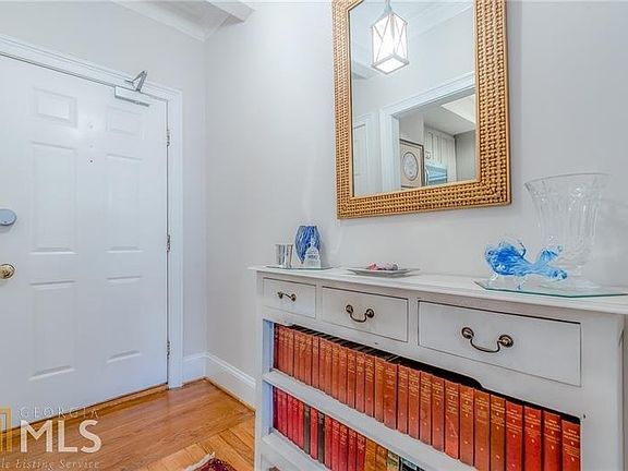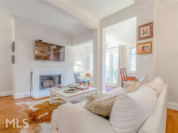 Beautifully renovated 2-bedroom/2-bath unit in historic Crestwood! Wonderful Buckhead location--walk to shopping/dining! True foyer w/ coat closet. Gorgeous kitchen renovation features stainless steel appliances, custom cabinets, quartz/silestone countertops, classic subway tile backsplash, stainless steel farmhouse sink, pantry w/roll-out shelves, full-size refrigerator (rare in this building!), slate floor. Newly redesigned floorplan means kitchen is open to living/dining areas, as well as foyer. Living/dining combo is gorgeous open space, perfect for entertaining! Wood-burning fireplace with gas starter in living room--one of the few working fireplaces in the building! Office nook off living room w/ charming exposed brick & French doors to balcony. Master bedroom w/ plantation shutters, plentiful closet space, and en suite bathroom. Second true bedroom features plantation shutters, two closets & decorative fireplace, as well as French door to second balcony. Hall/guest bathroom with tiled shower, upgraded custom sink. Laundry room (in unit!) off kitchen for stackable washer/dryer & extra storage. Upgraded lights & fixtures throughout--owner has AMAZING sense of style and the decor shows it! Original hardwood floors. Nest thermostat. Complex has recently put in a fitness center--a HUGE upgrade for this beautiful historic building! Unit comes with 4 (YES, 4!) parking spaces!
