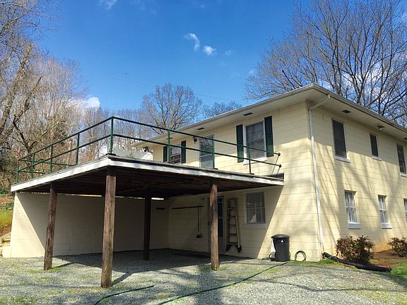 Private setting yet 3 miles from interstate access! This home features open LR/Kitchen area. Hardwood floors. Range/Fridge remain. Rooftop side balcony off kitchen. Unfinished basement w/ wood burning Fireplace offers expansion options and is plumbed for future bath. HVAC 4 Yr Old, Double carport area, small stocked pond on property.