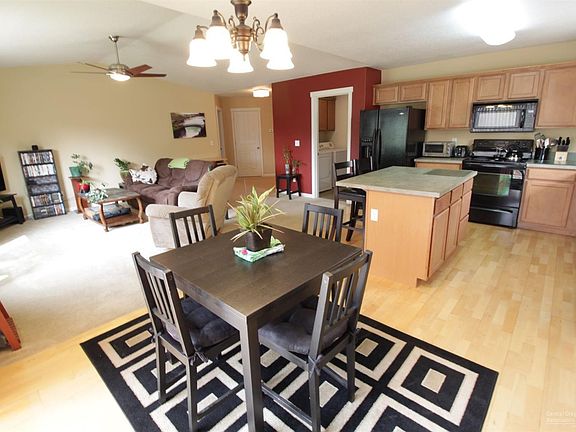 Spacious single-level 1554 Sq Ft home with vaulted ceilings and open floor plan. Kitchen features island with breakfast bar, wood floors, tile back splash, and pantry. Dining area also with wood floors and slider to paver patio in large fenced yard. Sprinkler system in both front & back yards, graveled side yards, RV parking. Master Bedroom with ceiling fan, walk in closet with storage system. Quiet residential neighborhood. Extended length 2 car garage with built in workbench. New gutters.