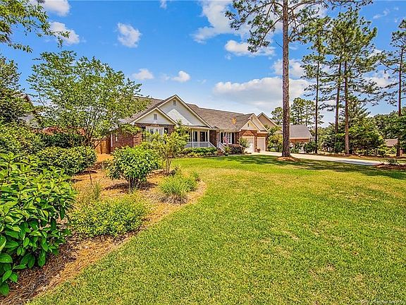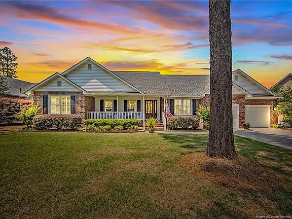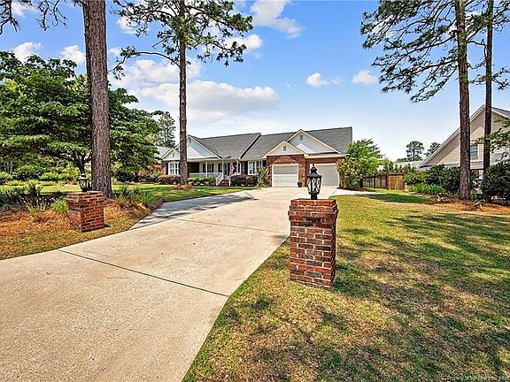Executive style brick ranch in the exclusive, gated, golf community of Gates Four, in the Jack Britt School District; this meticulously manicured and maintained home is situated on almost 1/2 acre, on a cul-de-sac with a view to the golf course;upon entering the home, you'll notice the beautiful hardwoods, welcoming foyer and formals to the left and right; formal sitting room/study has beautiful custom built in cabinets; large dining room opens to the updated custom kitchen with upgraded granite, backsplash, appliances, niche above the range and range hood; great room with vaulted ceiling and gas log fireplace; split floor plan has a large master suite with his/her walk-in closets, double vanity w/granite counters, garden tub and separate shower; two additional bedrooms down with full bath and guest bath; bonus room with closet upstairs could be 4th bedroom; out back you'll find a large covered back-patio overlooking the peaceful and privacy fenced backyard; too many upgrades to list