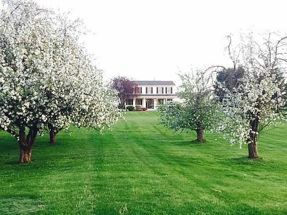 Custom and up to date with gas fireplace and beautiful views of orchard. Mainance free large deck with modern cable rail. Lots of sitting area including pergola with built in grill area overlooking in ground pool.