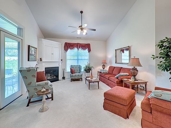 Charming end-unit located on 0.19 acres in Dominion Village! Nice open floor plan makes for easy indoor entertaining. Great room contains a gas log fireplace! Enclosed patio with tile floor and glass walls that can be opened into screen/sun porch. Central vacuum. Beautiful built in custom china cabinet! Oversized 2-car garage with cabinets for plenty of storage. HOA covers exterior landscaping/maintenance. Incredible amenities including golf course, three club houses, three pools, and more! Come take a look!