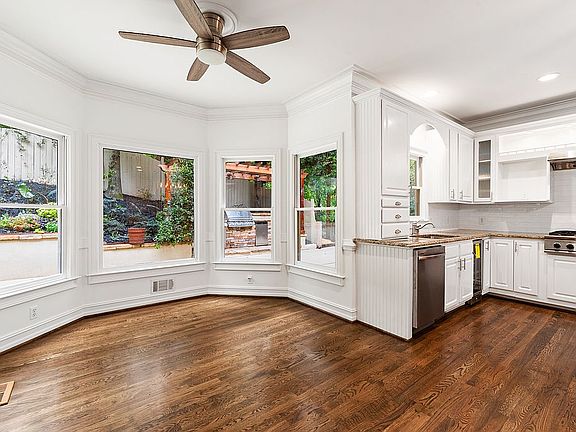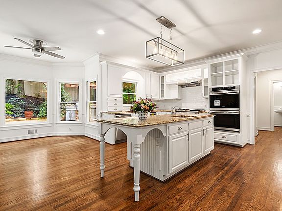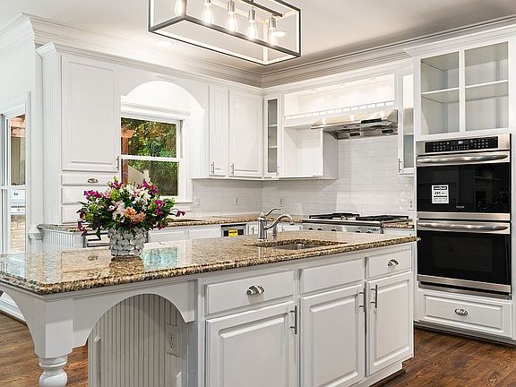 - Kitchen Features: Breakfast Bar, Eat-in Kitchen, Pantry, View to Family Room, Stone Counters, Kitchen Island, Pantry Walk-In, Breakfast Room, Cabinets White, Wine Rack