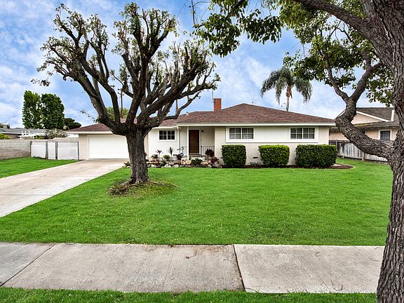 Beautiful single story ranch house on a quiet cul-de-sac with beautiful laminate flooring, dual pane vinyl windows, an extra enclosed sunroom, central heating and air, a spacious and open kitchen, all on a quiet cul-de-sac, feeding all the best schools in Fullerton!! Starts with a fantastic curb appeal, a luscious front lawn, multiple planters filled with flowers, a freshly painted exterior and a newer rollup garage door. Enter in and be greeted by the elegant wood laminate flooring, into an âopen floor planâ living room, anchored by a prodigious brick fireplace with a brick hearth accented by built-in bookshelves. Enjoy a Large formal dining room with lighted ceiling fan the perfectly opens to the large and spacious kitchen that has rich hardwood cabinetry, four burner magic chef range with vented hood, and an abundance of counter and cabinet space! Youâll love the extra-large enclosed sunroom (not included in the square footage) with a lighted ceiling fan and glass slider that leads to an entertainerâs covered patio and then into a large backyard thatâs totally private and serene. Hardwood floors in all three bedrooms that are all spacious and all have lighting ceiling fans! The Master bedroom even has a walk-in closet and attached bathroom. The 2 car garage is extra wide and has lots of built-in storage areas.