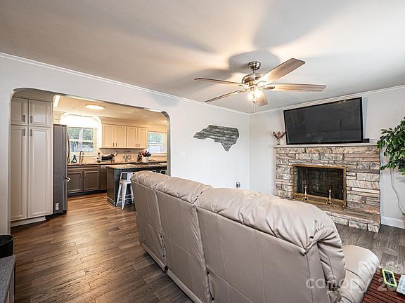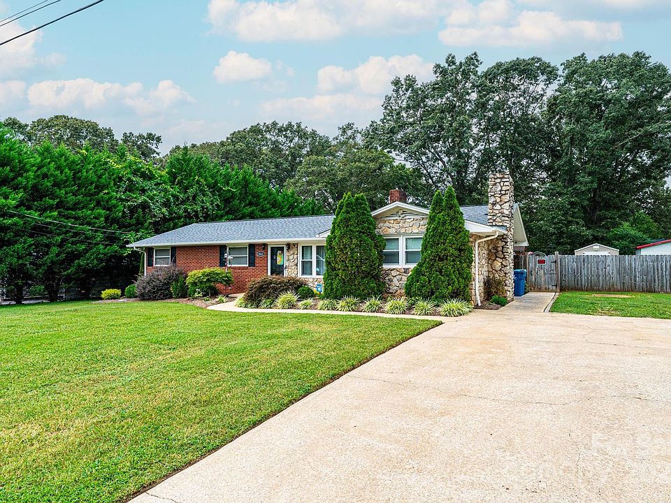 Inside, you'll find a cozy living room with a brick fireplace—great for relaxing. The kitchen has granite countertops and a large bar that's perfect for casual meals or hosting friends. It comes with a gas stovetop, microwave, oven, and dishwasher (note: refrigerator not included). The floors throughout are durable luxury vinyl plank.The former garage has been turned into a large primary bedroom with its own fireplace, making it a warm and inviting space. There are also two more good-sized bedrooms and a bonus room currently used as a walk-in closet and office.The bathroom features a tiled shower with a built-in bench and a modern vanity. All the windows have been replaced over time to improve energy efficiency and let in more natural light.