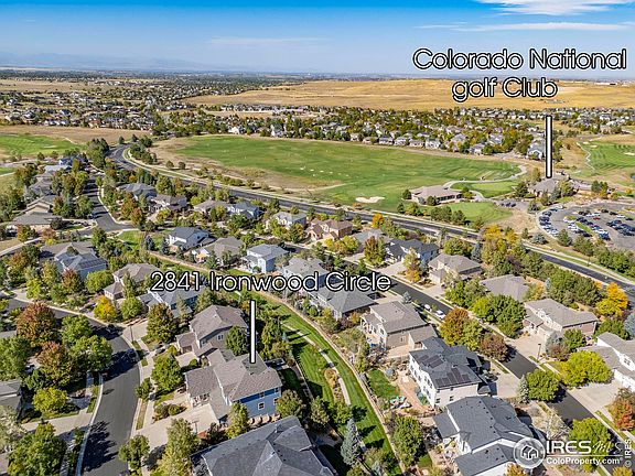 Welcome home to this exquisite home on an elevated quarter-acre lot in the Colorado National Golf Club community of Vista Ridge offering 5765 square feet of luxury, charm, and elegance. The welcoming entry with two stunning main floor offices opens to a formal dining room and massive gourmet chef's kitchen with a custom island and stainless-steel appliances, an inviting hearth room featuring a double-sided stone fireplace, a huge family room with second stone fireplace for entertaining large or small groups, and an extended three-car garage with impressive built-in storage. On the second level you will fall in love with the phenomenal owners' retreat featuring an enormous primary bedroom, a luxurious primary bath suite, and a generous walk-in closet. The remaining second story boasts a spacious loft with Rocky Mountain views, well appointed guest suite, two more large bedrooms, and one more full bathroom. The finished walkout lower level maximizes flexible space for living, including a large media area, extra space for games or toys, and a built-in wet bar. Imagine the possible uses for the three additional basement bedrooms, whether for your growing family, guest rooms for out-of-town guests, or oversized craft room, home gym or a children's play room. Outside you will find ample space for entertaining with two covered patios, a flagstone patio, a large yard with room to play, and a greenbelt with walking trail just beyond the back fence. With a five-minute walk to the community center pool, recreation facility, golf course and restaurant, miles of walking and biking paths, and just a 30 minute drive to Boulder or DIA. Fall in love with this sensational property and discover what people love about living in Vista Ridge.