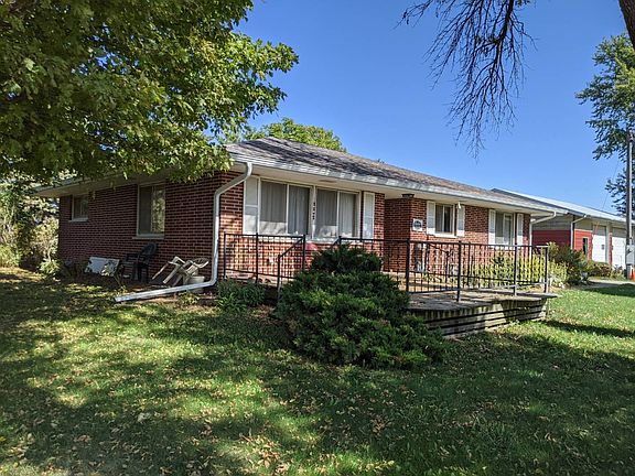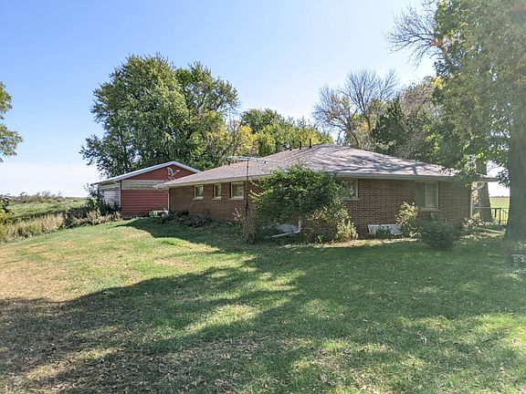 Brick ranch home with attached garage, large eat-in kitchen, spacious family room, main floor laundry, big master bedroom closet, full basement and hardwood floors throughout most of the upstairs! Roof of only 2 years old and there's 3 grain bins, numerous old out buildings, mature trees, paved road and 32' x 48' steel building with overhead doors and a concrete floor. The 80 acres are a mix of trees, CRP ground (just got out on October 1), a pond and 51 acres crop ground.
