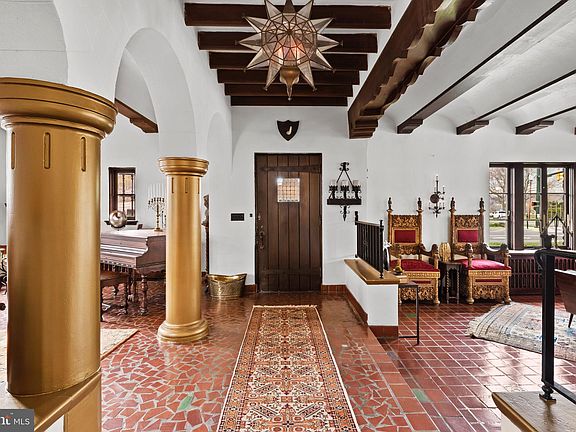 At the entrance of one of the city's most sought after neighborhoods, Academy Manor, this captivating historic home offers an enchanting blend of timeless old world elegance and modern comfort. “Spanish Corners” was built in 1926 by world renowned engineer Farley Gannett as his family residence. This ‘Old World Spanish’ style home designed by Architects Lawrie and Green has been woven into the fabric of Harrisburg’s historic tapestry… serving as the birthplace of the Harrisburg Community Theatre and Harrisburg Symphony. The Gannett’s designed this home with entertaining in mind, and it was thoughtfully crafted of concrete and stucco, unique elements of cast stone, a Ludowici tile roof, bespoke ironwork, and custom Terra cotta Promenade Tile. The home has been meticulously preserved with respect to the architectural details of the style and period. This home boasts 12’ barrel ceilings, walnut trim, original cypress windows and French doors throughout, making the home bright even on the dreariest of days. Upon entering you are greeted with an unencumbered view of the length of the home through the loggia which is flanked on the left by a grand living area with a large fireplace, and on the right by the music room with cast stone columns. Continuing through the loggia we encounter a handsome library with a barrel ceiling, fireplace, and built in bookshelves. Floor to ceiling arched French doors open on both sides of the loggia accessing delightful courtyards with bubbling fountains. Advancing further, the formal dining room with a stunning stained glass window (believed to be an original by Tiffany) and fireplace sets the stage for the dinner parties of your dreams. The adjacent kitchen features a comfortable breakfast nook and butler’s pantry and has access to the service stairwell. The gracious main staircase ascends to the upper level, which features 6 bedrooms, all with contiguous wood floors, and 4 full baths. The primary bedroom suite boasts two fireplaces, a bay window, Juliette balcony, and a period tiled bath. A secondary bedroom suite touts an original 7 jet brass and gold shower, and soaking tub. The remaining 3 bedrooms and 2 full baths complete the upper level. The lower level with many daylight windows offers three large rooms originally used as a ballroom, a study, and a card room. There is also a half bath, a walk-in cedar closet, a laundry room, and abundant storage space. The detached 2 car garage accessed from Penn St. also has a bedroom and full bath above , perfect for an on-site caretaker or studio. This storied property is conveniently located just minutes to the Capitol Complex, Downtown, Riverfront Park, and highway. Come Fall in Love!